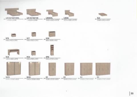 SET SLAAPKAMER LAGO: BED 160X200 SMALLE KOP+ 2 NACHTTAFELS+KOMMODE+VIERDEURSKAST DRAAIDEUREN